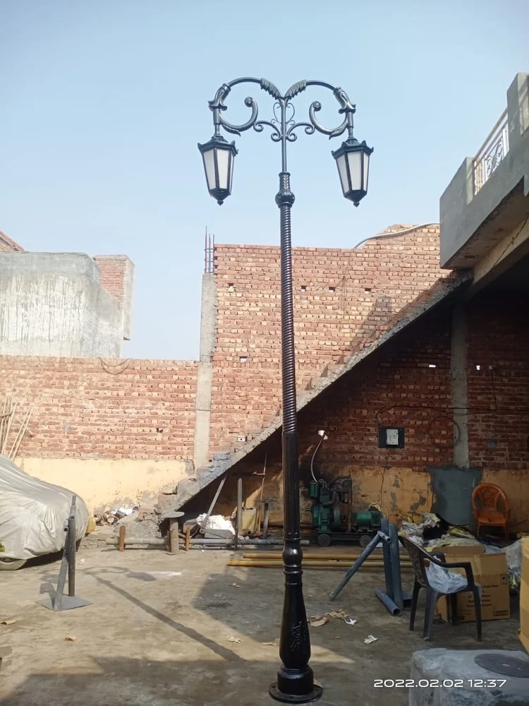 Aluminium casted double arms heavy lighting Pole, with frosted acrylic diffuser, suitable for 2x18W B-22 type LED bulb, similar to the image.Packaging Details: Strong cardboard boxes